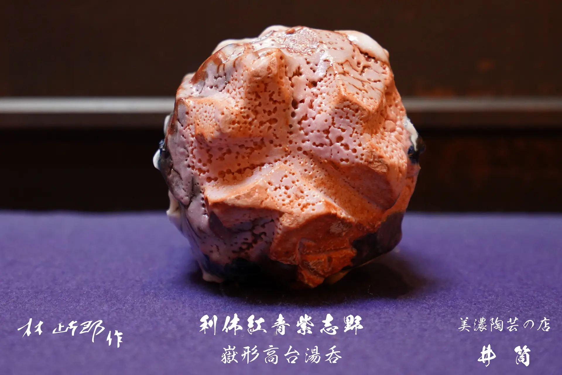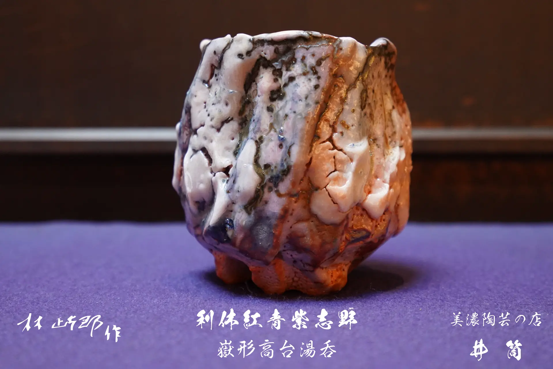 利休紅青紫志野 嶽形高台湯呑