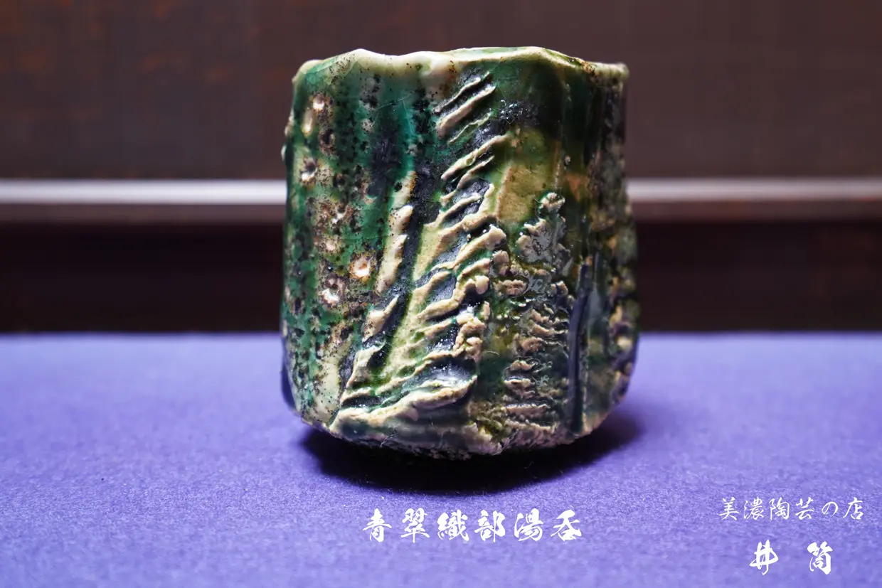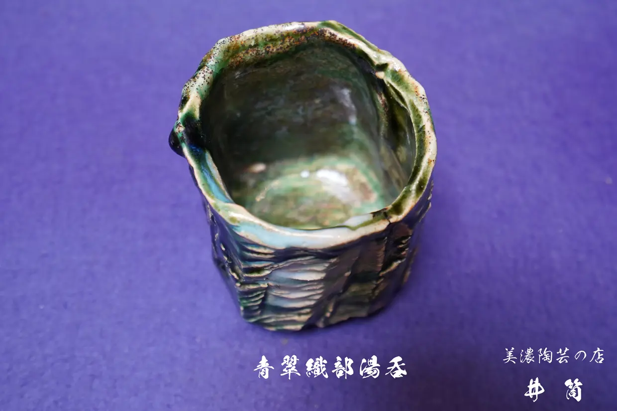 青翠織部湯吞 二